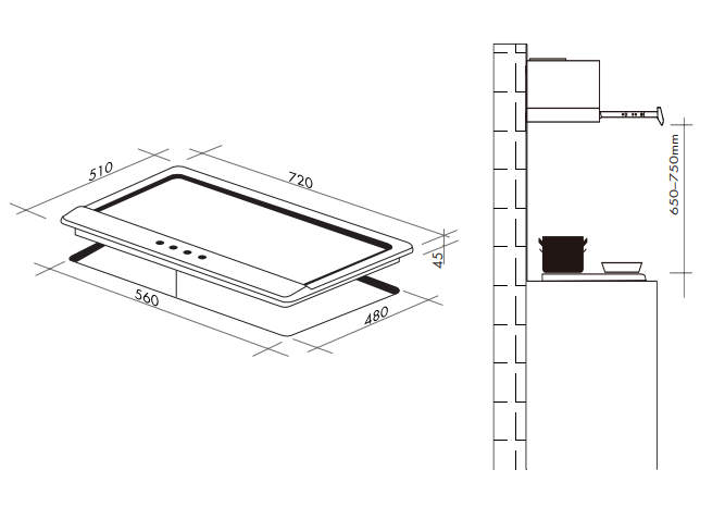 Burner/Zone Power: Centre wok: 3.5 kW/hr, 1x auxiliary: 1.0 kW/hr, 2x semi-rapid: 1.75 kW/hr, rapid: 3.1 kW/hr