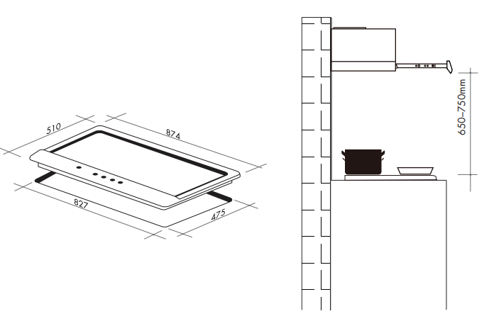 Dimensions (WxDxH): 874mm x 510mm x 100mm