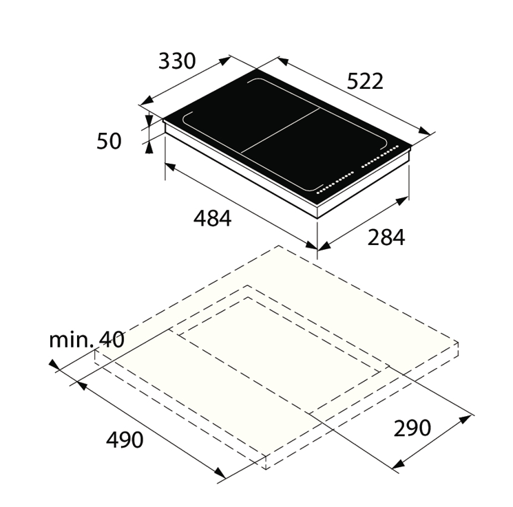 | CUTOUT DIMENSIONS: | 290mmW x 490mmD |