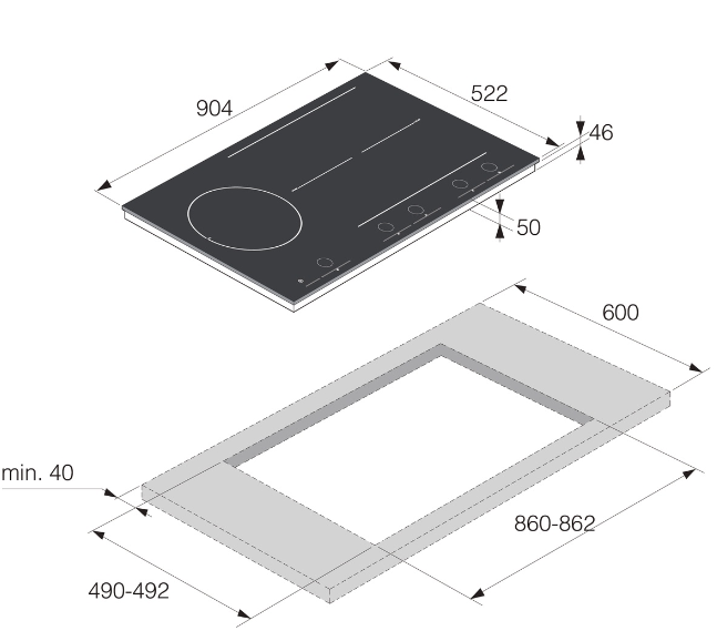 | CUTOUT DIMENSIONS: | 860mmW x 490mmD |