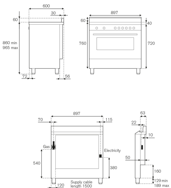 Dimensions (WxDxH): 895mm x 600mm x 890-915mm