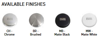 Finishes: Chrome (CH), Brushed (BR), Matte White (MW), Matte Black (MB)