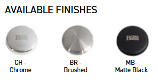 Finishes: Chrome (CH), Brushed (BR) & Matte Black (MB)
