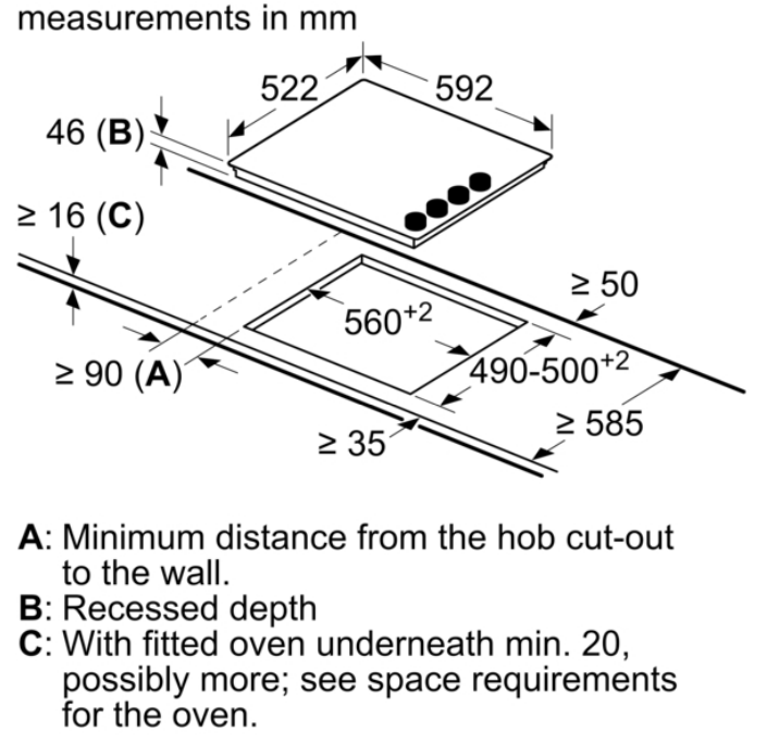Cutout Dimensions: 560mmW x 490mmD x 46mmH