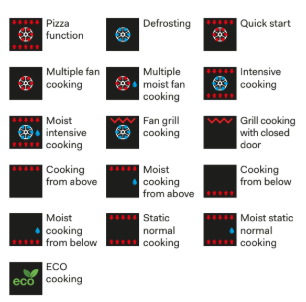 Maximum input: 3,5 kW Top electrical heating element: 1000 W Bottom electrical heating element: 1100 W Electric grill: 2100 W Circular heating element: 2100 W |