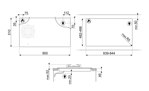 | CUTOUT DIMENSIONS: | 844-848mmW x 482-486mmD |
